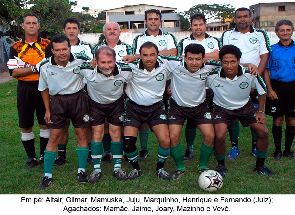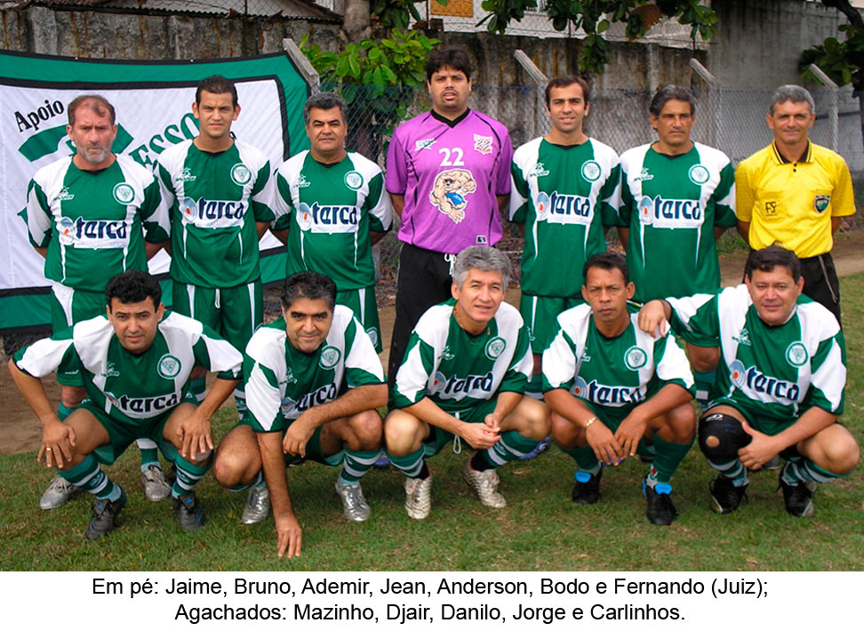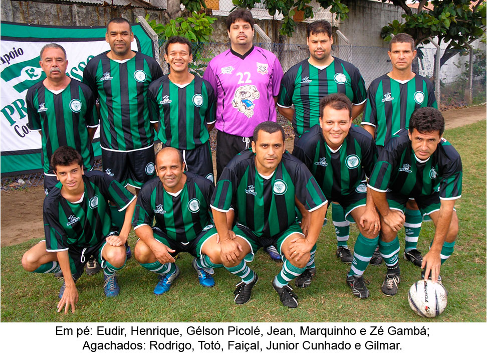 Agachados: Walter, Jorge, Djair, Luka, Etni, Pedrinho (criança), Rodrigo, João Vitor (criança), Magrão, Reginaldo, Joary, Esdras, Carlinhos, Jaime, Dilton e Juninho Bill.