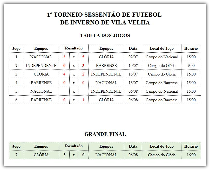 A final do torneio de Inverno foi realizada entre Glória e Nacional no dia 06 de agosto de 2016.